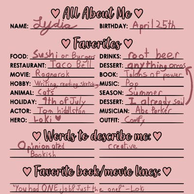 I like, music, art, cats, most people, books, and writing books! I also like Animal Jam! (My user on AJ is Lydiathebooklover) I'm also a proud Christian! ✝️❀️🫡