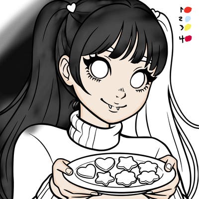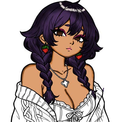 a girl with long hair. make only from her waist up showing and she is wearing g a sweater the is half off her shoulder. she needs to hold one peace sign. make her have no mouth, only have eyes. make her whole body facing the camera. and no black hair.sanrio kuroumipower puff girlspower puff girlspeople_21fantasy_14manga_06fairytale_5black girlanimals_28fantasy_16fantasy_21people_223people_71manga_01realistic girl with curly hairrealistic girl holding a boba with braided hairpretty manga girlwoman with glassesfood_05a group of five girlspeople_273