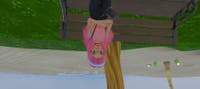 realistic girl with hip length hair a bun and a big bow on the back of head