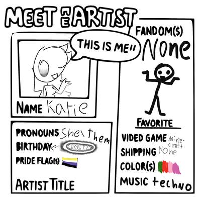 Hi my name is katie and I am 14 years old my pronouns are she/them and I am offline (btw I lost most of my sanity so work with me here)