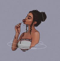 realistic girl with a oversized sweatshirt on and a bun