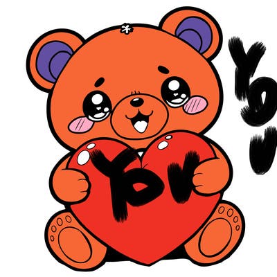 A teddy bear paint the heart