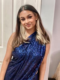 girl with long hair a crop top and a jacket