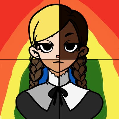 girl in baggy pants crop top and long hairrealistic girl splitrealistic girl with buns on the top of her headperson with mustache and pigtailsanimals_07girl in baggy pants crop top and long hair