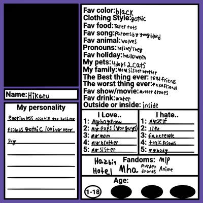 Children: haruto🖤🤍 jay💜 im non-binary but normaly goes by he/she/they is pansexual is a proud therian