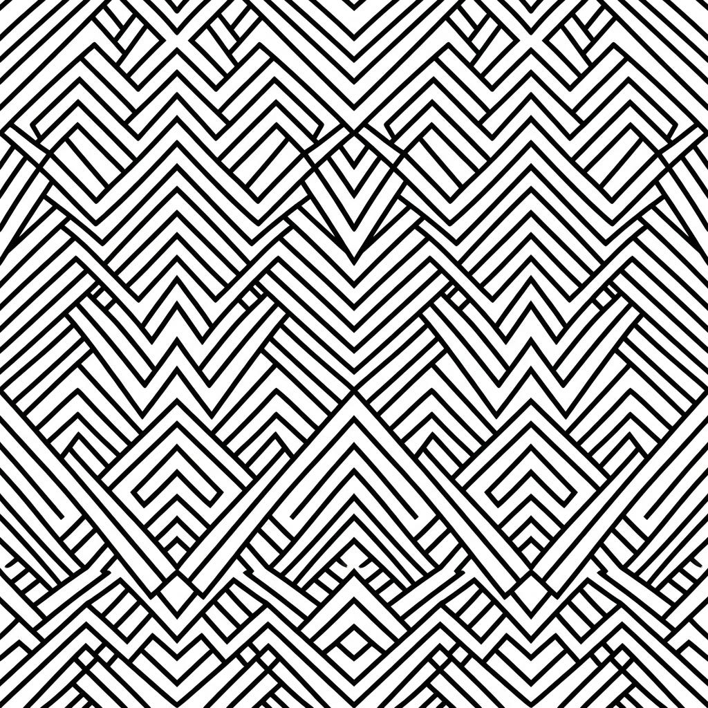 Explore a stunning array of repeating V-shaped and inverted V-shaped lines that create a dynamic and intricate geometric pattern. This captivating design provides a rich and dense coloring experience for all ages.