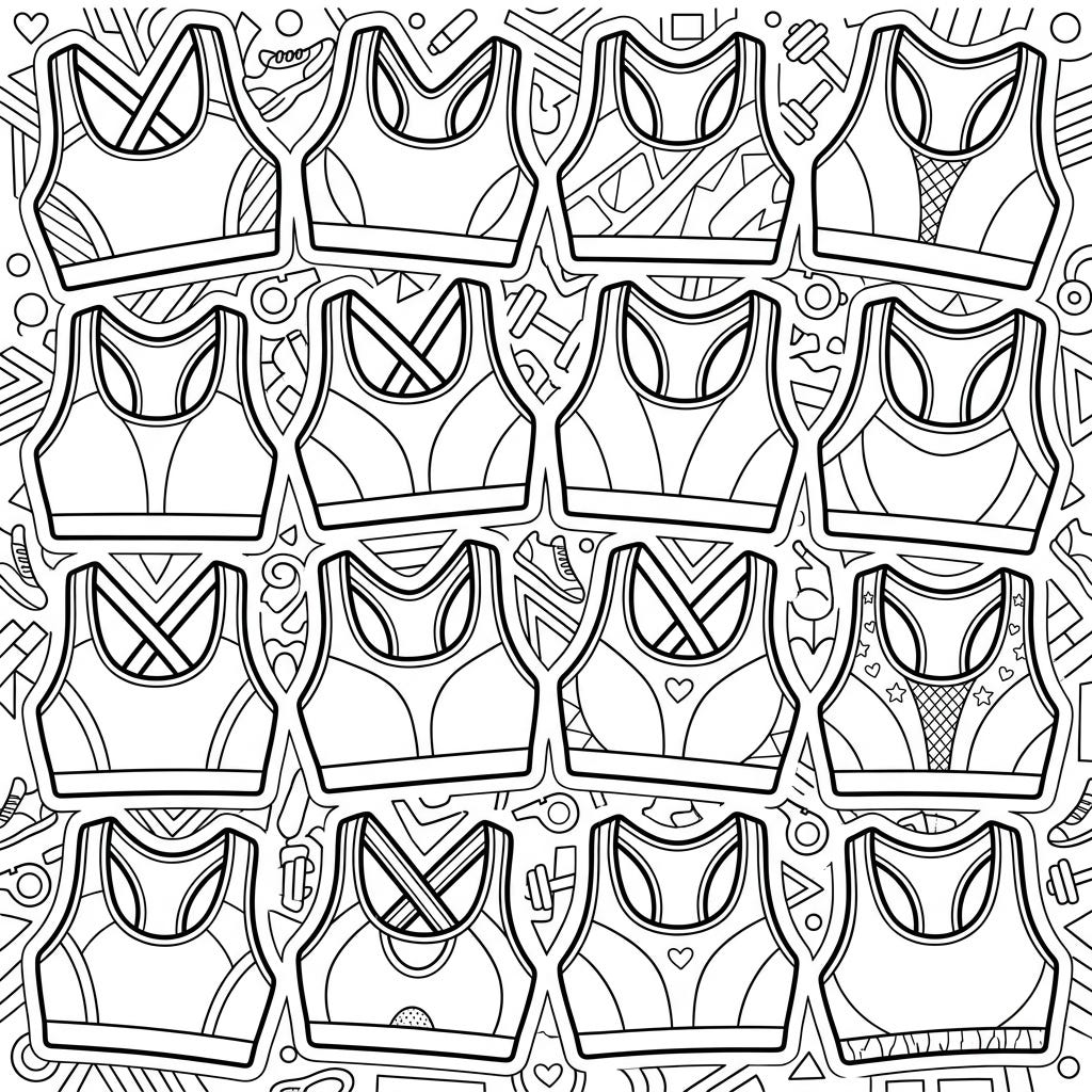 Dive into the world of athletic fashion with this exciting coloring page featuring a variety of sports bra designs. Perfect for young artists, it's a fantastic way to celebrate movement and style through color.
