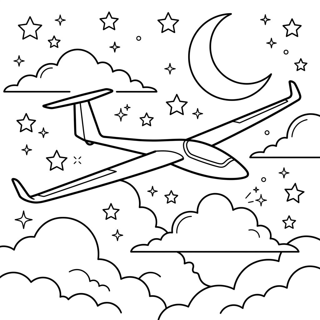 Let your child's imagination take flight with this enchanting coloring page, showcasing a graceful glider amidst a starry night sky. It's perfectly designed for young artists to enjoy creative and serene coloring fun.