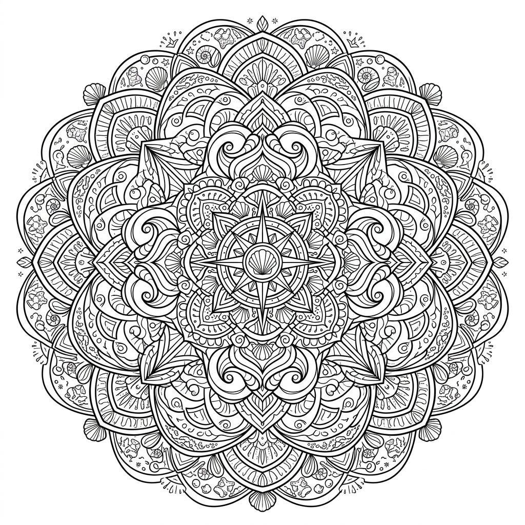 Immerse yourself in the calming beauty of our Pink Sand Beach Mandala coloring page, an intricate design inspired by serene coastal landscapes. This unique artwork combines geometric precision with delicate marine elements, offering a delightful and relaxing coloring experience for all ages.