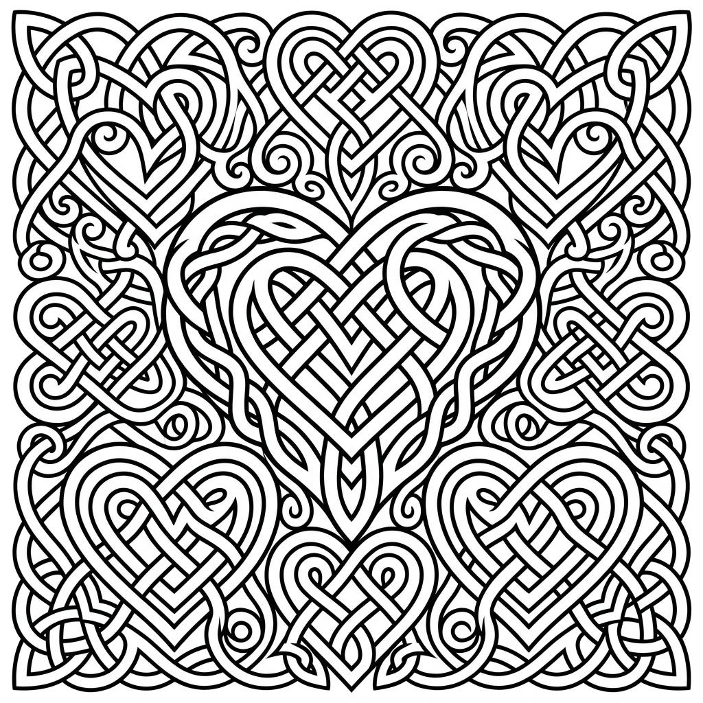 Delve into the enchanting world of Celtic Heart Knots, where intricate patterns beautifully intertwine to form or incorporate heart shapes. These designs are rich in symbolism, often representing eternal love, unity, friendship, and devotion. Our collection showcases a variety of styles, from simple and elegant hearts to more complex knots, offering a captivating artistic experience for colorists of all ages and skill levels.