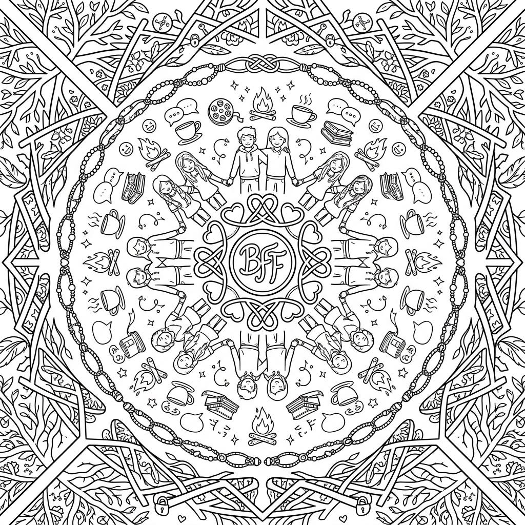 Dive into friendship with this intricate Best Friends Mandala coloring page. It's a beautiful way to celebrate your closest companions and create a vibrant tribute to togetherness.