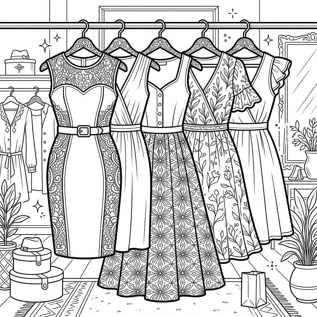 Step into the world of sophisticated style with this engaging coloring page featuring a collection of trendy work dresses. Perfect for teens, it offers a creative outlet to design your ideal professional wardrobe with intricate details and chic patterns.