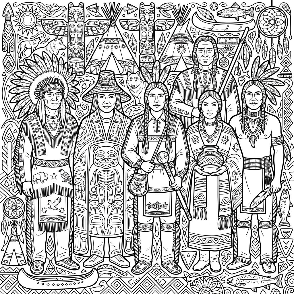Immerse yourself in the rich tapestry of Indigenous North American cultures with this beautifully detailed coloring page. Explore traditional attire, iconic symbols, and cultural elements, offering both artistic enjoyment and an educational experience.