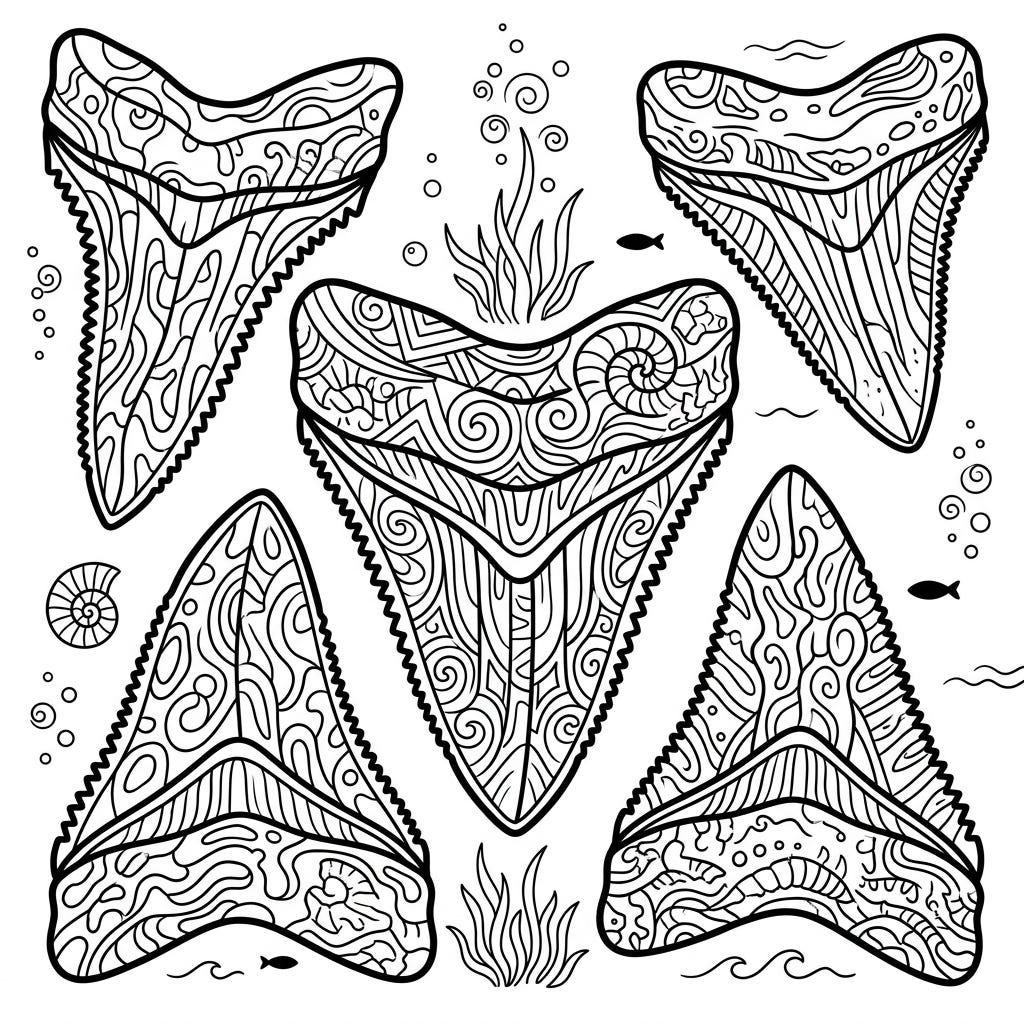 Embark on an artistic journey to the ancient oceans with this detailed Megalodon teeth coloring page, designed for adults. Discover the formidable beauty of these prehistoric shark teeth, each intricately patterned for a relaxing and engaging creative escape.