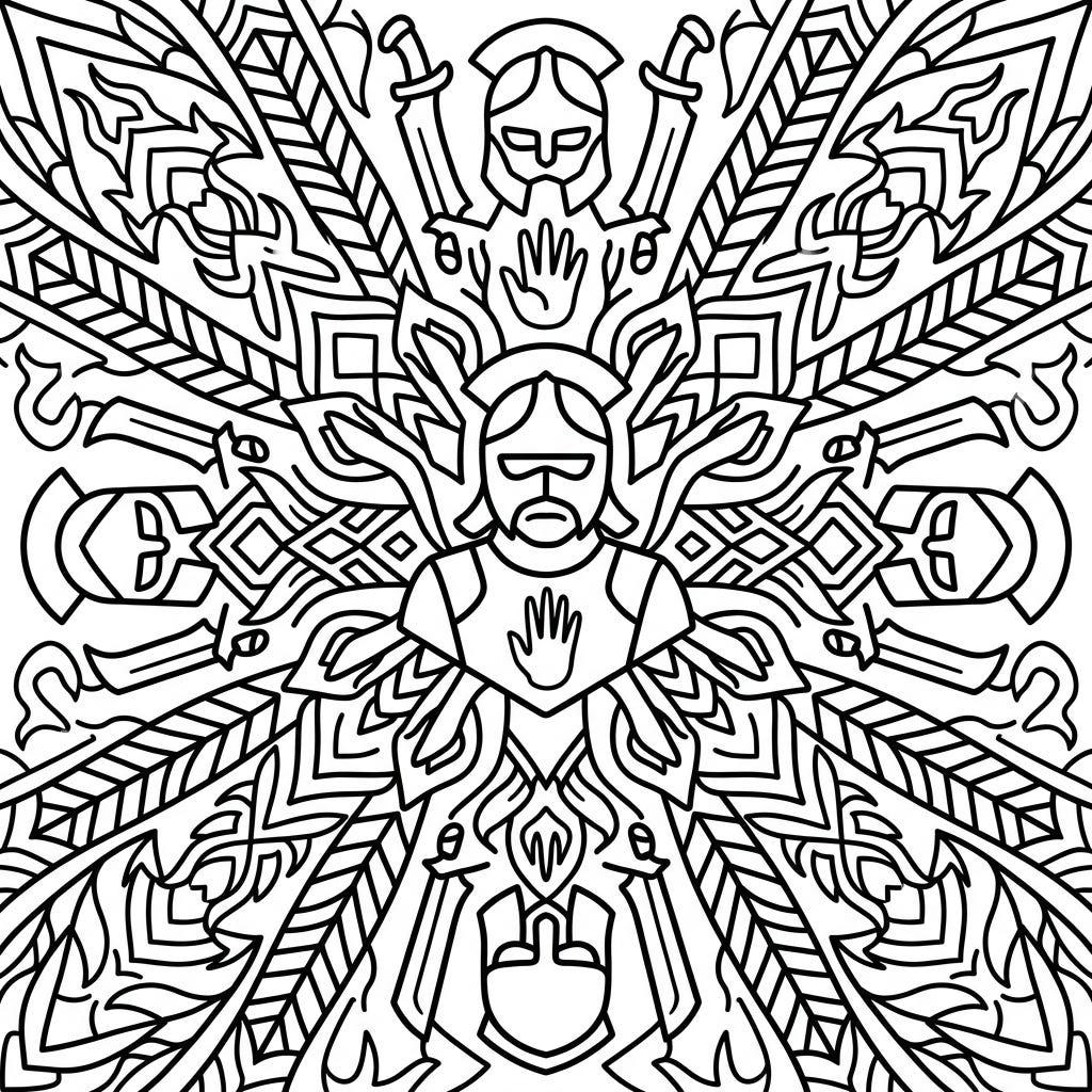 Dive into a unique fantasy coloring experience with this Uruk-hai Mandala, perfectly designed for young adventurers. Its bold lines and symmetrical patterns make it an engaging and fun activity for kids.