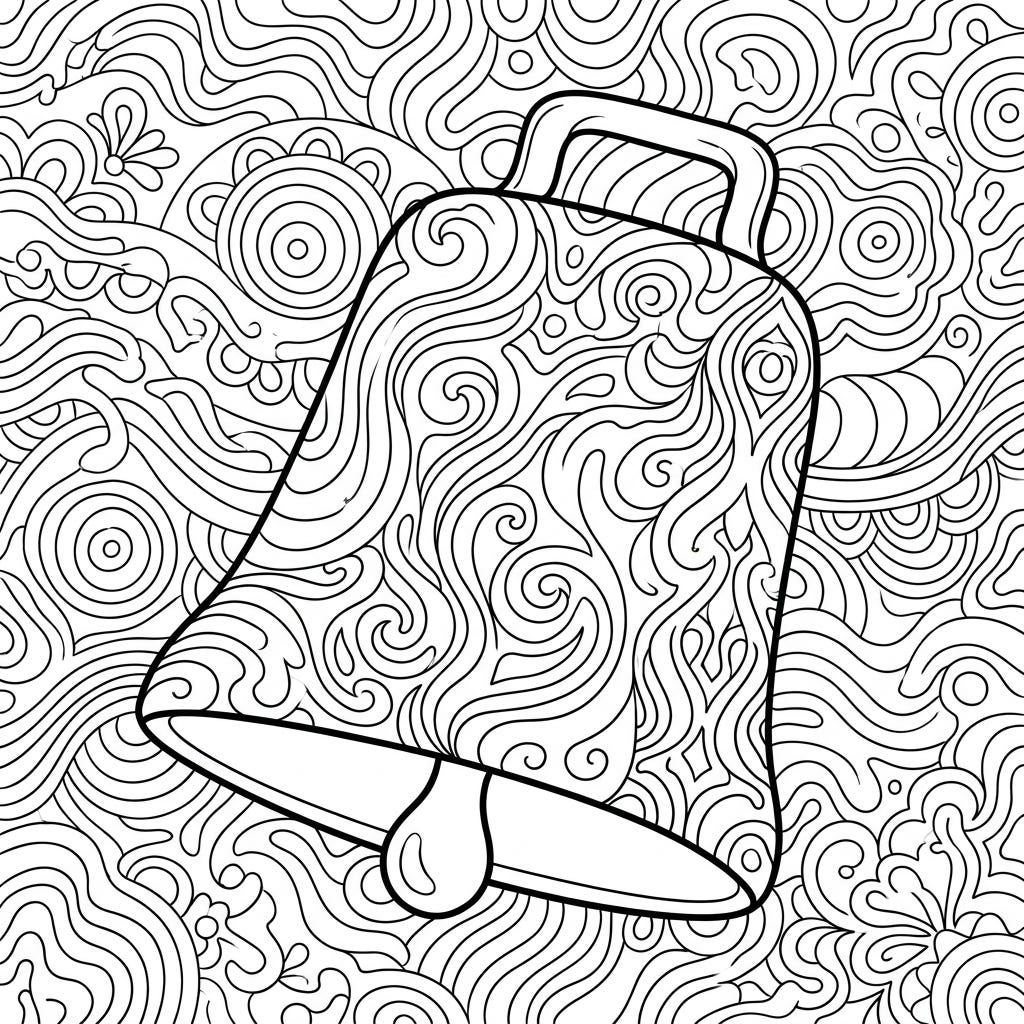Get ready for a groovy coloring experience with this unique psychedelic cowbell design. Kids aged 4-8 will love bringing these swirling patterns to life with their favorite colors.