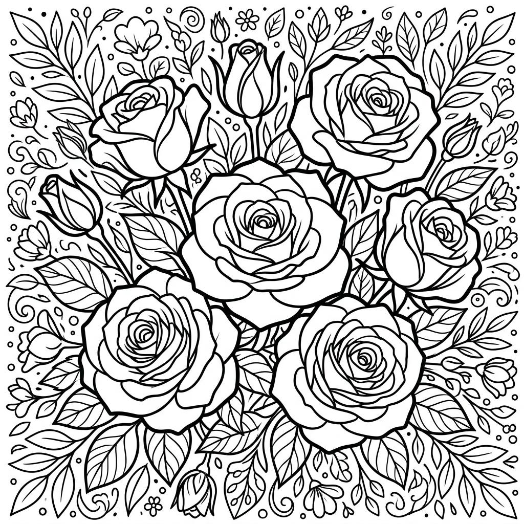 View coloring pageImmerse yourself in the serene beauty of this white roses coloring page, featuring elegant blooms and delicate foliage. This intricate design offers a peaceful escape, perfect for bringing vibrant colors to life.