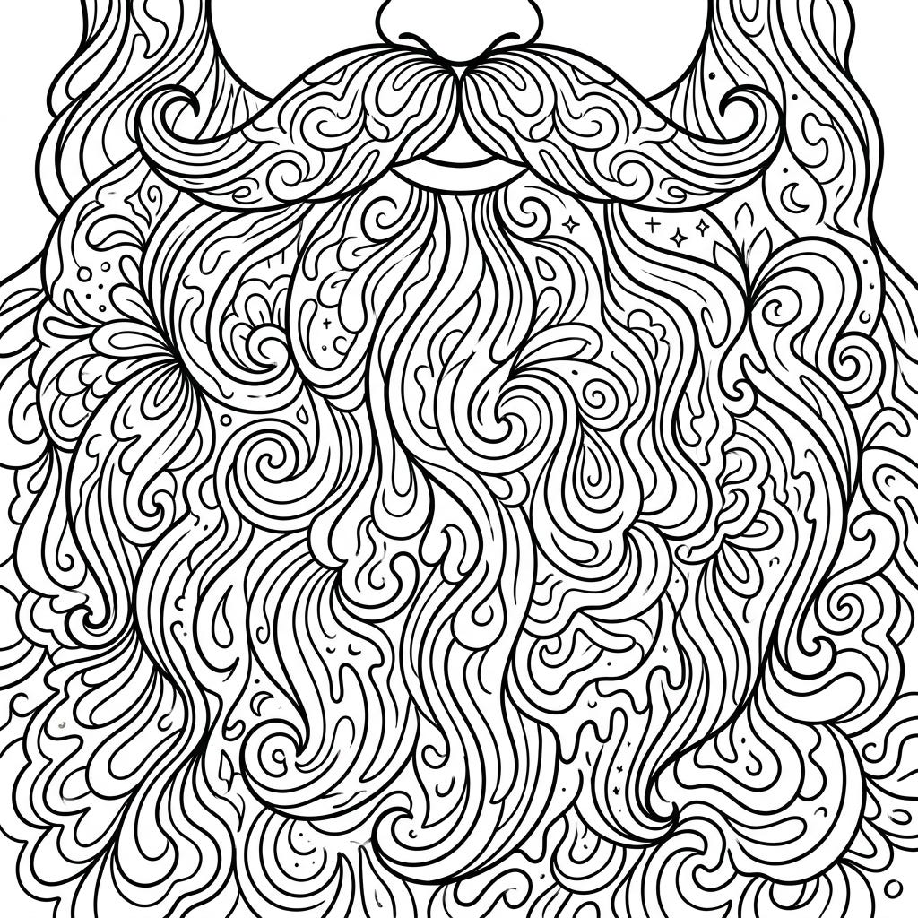 View coloring pageExperience a fresh take on holiday cheer with this intricate psychedelic Santa's beard coloring page. Its swirling patterns and unique design offer a wonderfully whimsical challenge for colorists of all ages.