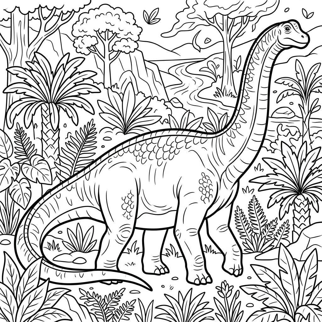 Embark on a prehistoric journey with this captivating Dreadnoughtus dinosaur coloring page. Designed with seniors in mind, its clear lines and engaging details offer a relaxing and stimulating creative activity.