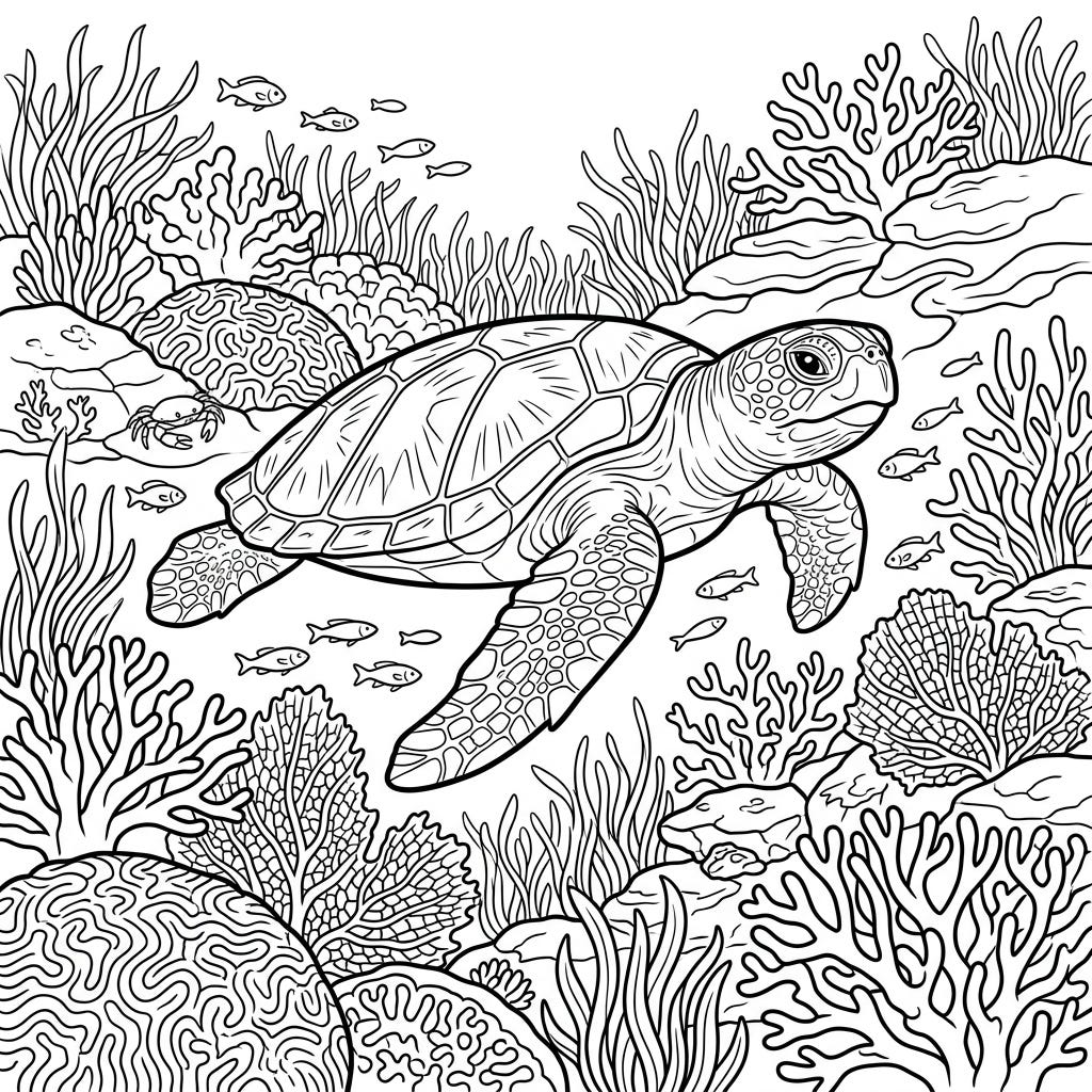 View coloring pageDiscover the beauty of the ocean with this exquisite Kemp's Ridley Sea Turtle coloring page, swimming gracefully amidst a vibrant underwater garden. Immerse yourself in a serene marine scene, ready for your creative touch to bring it to life.