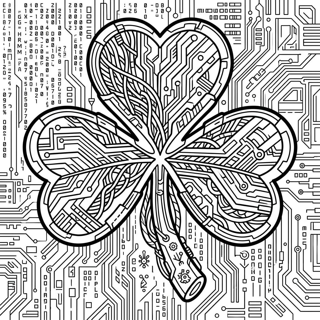Introducing a unique blend of Irish tradition and sci-fi cool with our Cyberpunk Shamrock Jewelry coloring page. Immerse yourself in a world of intricate circuit board patterns and high-tech designs, waiting for your creative touch.