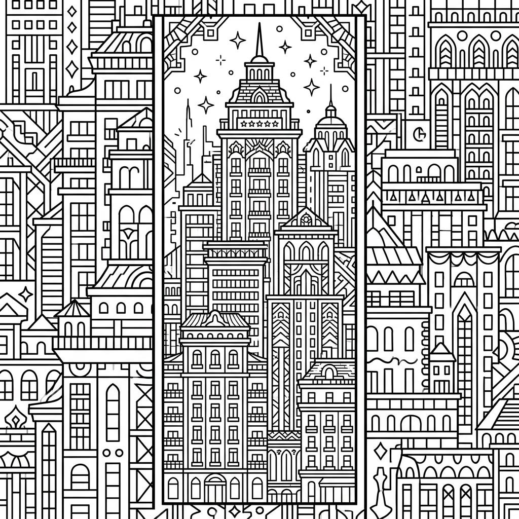 Immerse yourself in a towering metropolis with this intricate hotel skyscraper design. Perfect as a detailed bookmark, this coloring page offers a unique architectural journey.