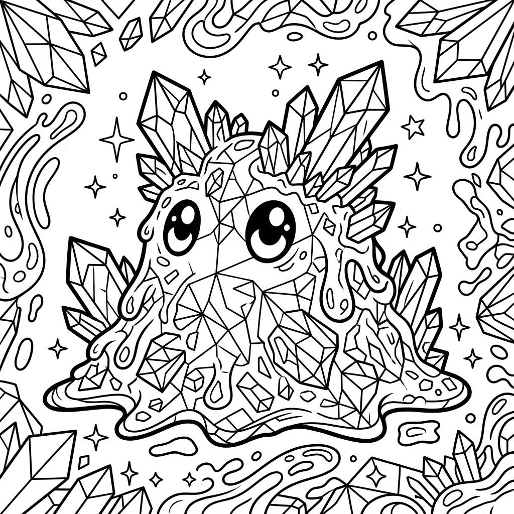 Get ready to color this amazing Crystal Slime, a trendy creature bursting with unique crystalline details. This intricate design is perfect for teens looking for a creative and engaging coloring challenge.