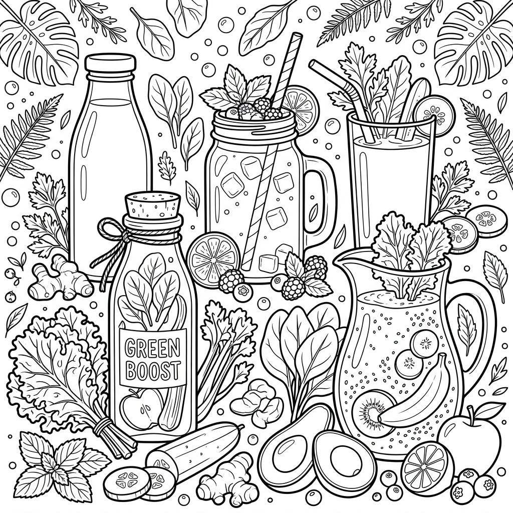 Our Green Smoothies & Juices coloring pages blend the joy of art with the goodness of nature. Discover intricate illustrations featuring various fruits, leafy greens like spinach and kale, and refreshing juice concoctions, perfect for inspiring healthy habits and mindful coloring. These pages are designed to entertain and educate, offering a calm escape as you bring vibrant colors to life.