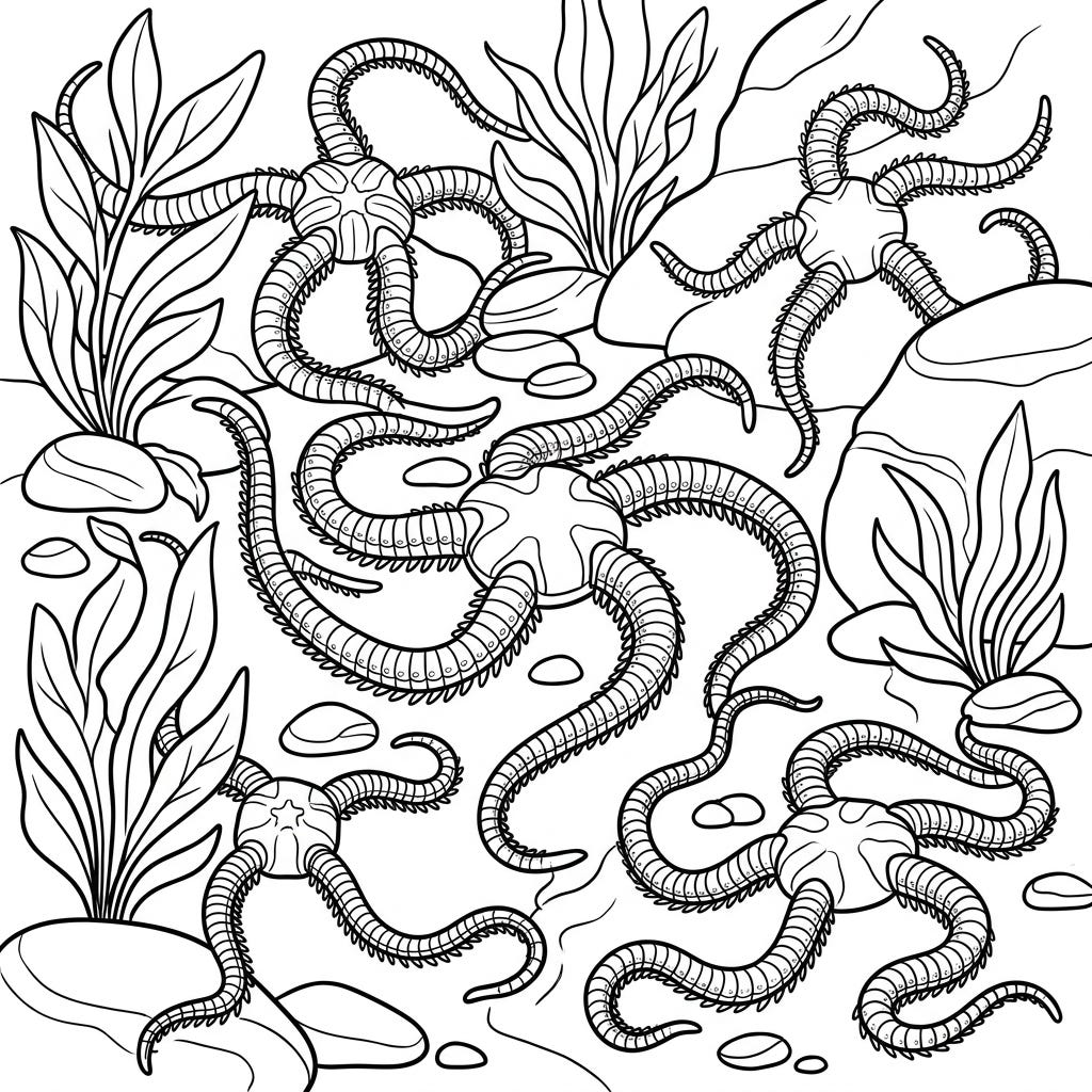 Explore the delicate beauty of Brittle Stars with our diverse range of coloring pages. These unique marine animals, closely related to starfish, feature long, slender arms distinct from their central disk, offering endless creative possibilities. From realistic depictions of their varied textures and patterns to more whimsical interpretations, you'll find designs that capture the essence of these amazing ocean dwellers, perfect for anyone fascinated by sea life. Engage with their intricate structures and learn more about their place in the marine ecosystem as you bring them to life with color.