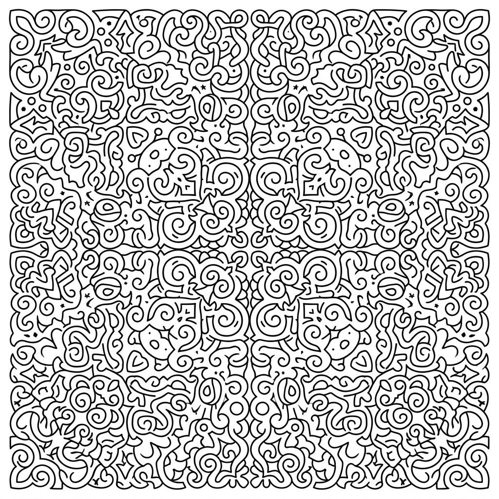 Unleash your creativity with this intricate abstract form grid pattern coloring page. Explore a world of swirling lines and symmetrical shapes, offering a deeply satisfying coloring experience.