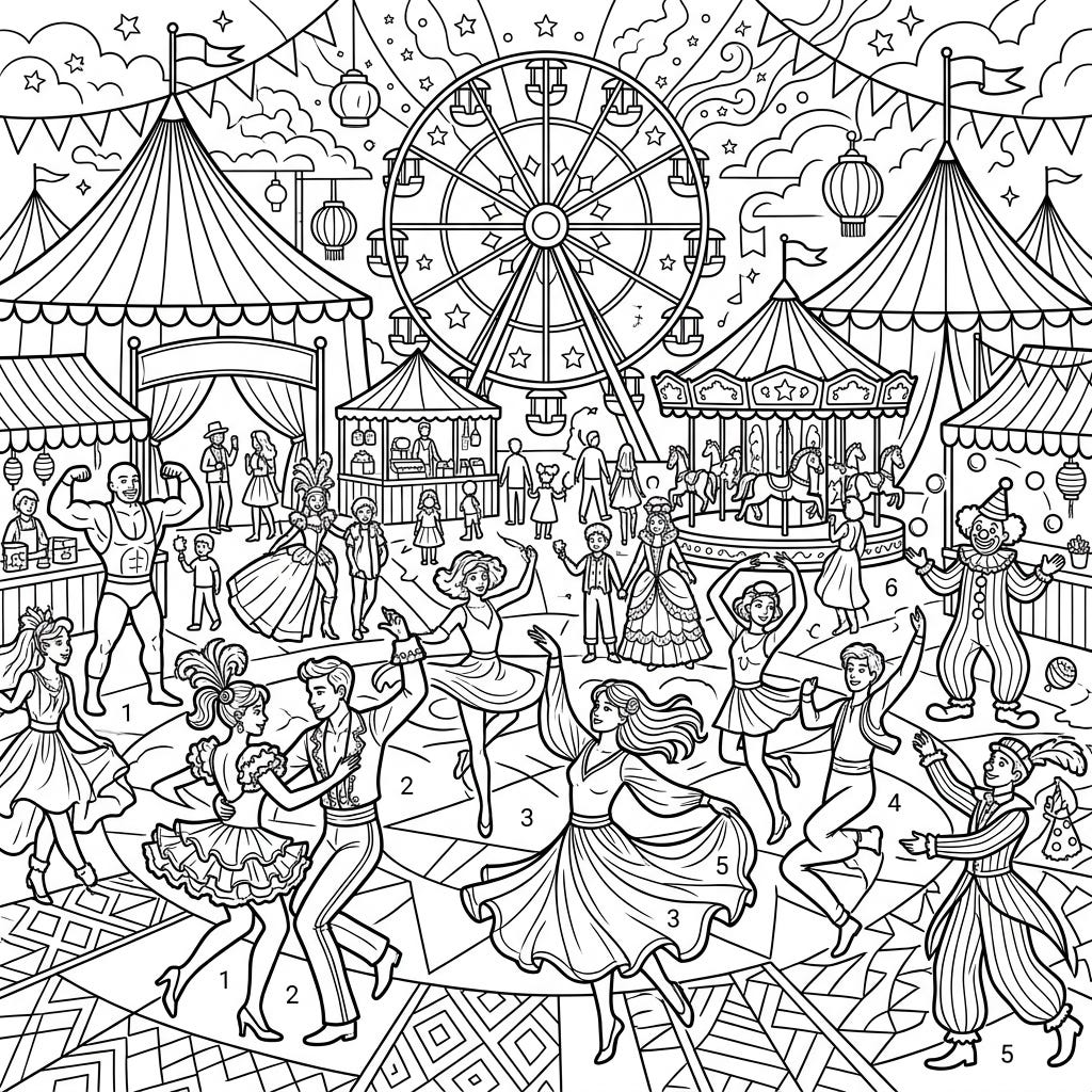 Step right up to a world of rhythm and revelry with this captivating coloring page featuring teenage dancers at a lively carnival. Immerse yourself in a dynamic scene filled with fairground attractions, performers, and endless opportunities for creative expression.