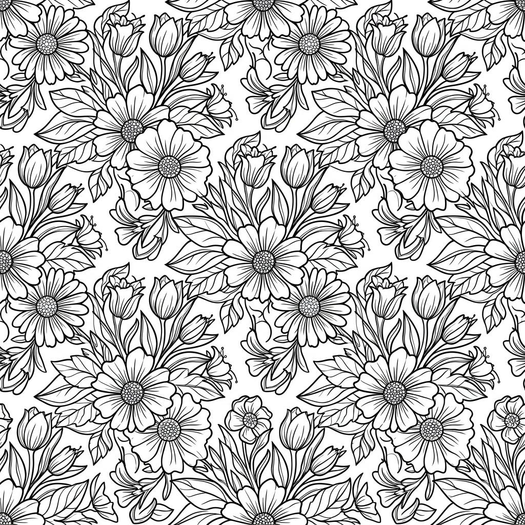 Explore a beautiful world of flowers with this engaging tessellation coloring page, specially designed for kids aged 4-8. Little hands will love bringing this intricate pattern of interlocking blooms to life with vibrant colors.