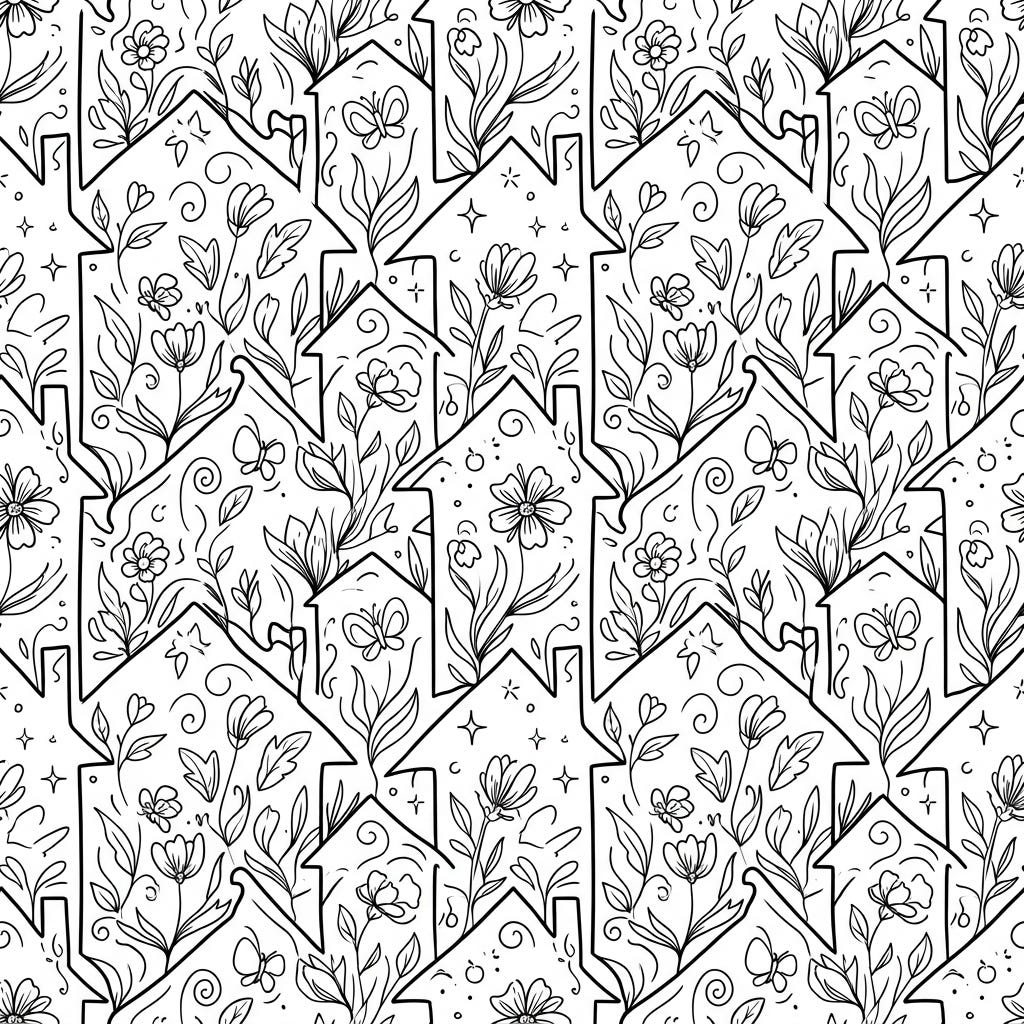 Dive into the beauty of spring with this unique house tessellations coloring page. Featuring interlocking homes adorned with blossoming flowers and delicate butterflies, it offers a refreshing artistic escape for all ages.