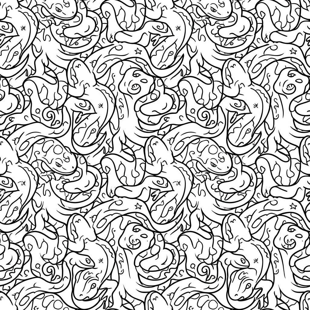 Unleash your child's creativity with this captivating reptile tessellation coloring page, specially designed for kids aged 4-8. Featuring an engaging pattern of interlocking lizards and snakes, it promises hours of artistic fun.