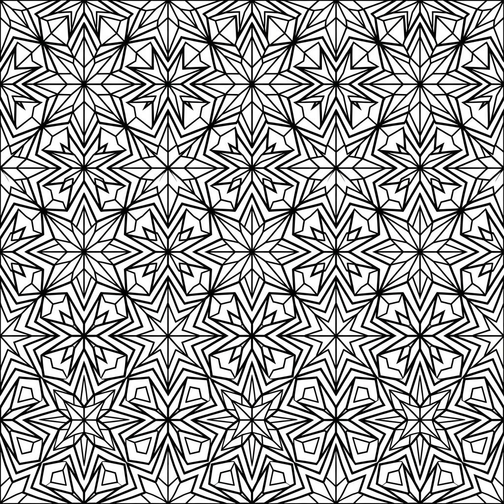 View coloring pageDive into the mesmerizing world of star tessellations with this specially designed coloring page. Featuring large, clear outlines, it offers a perfect blend of engagement and accessibility for senior colorists.
