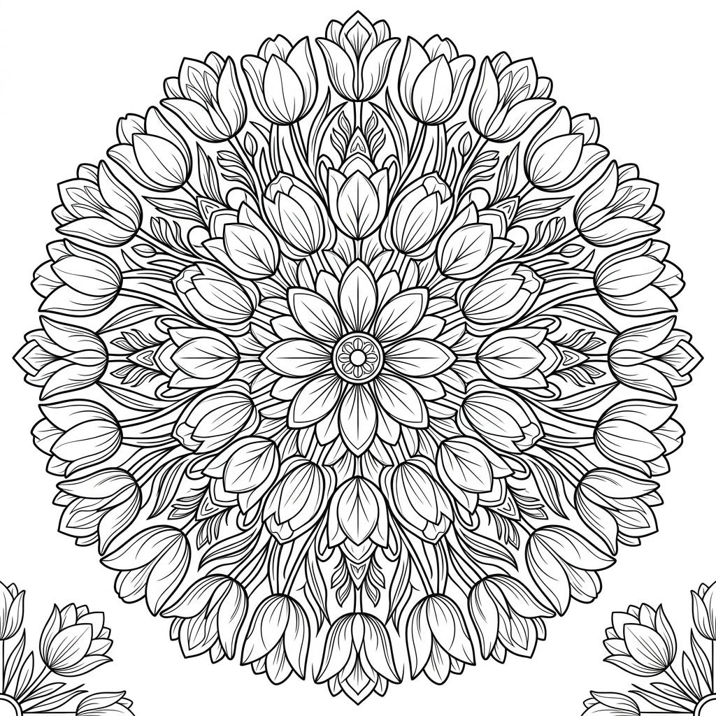 Discover tranquility with this exquisite Fosteriana Tulip Mandala coloring page, featuring a beautifully symmetrical floral pattern. Perfect for adult colorists seeking a relaxing and creative escape into the world of nature-inspired art.